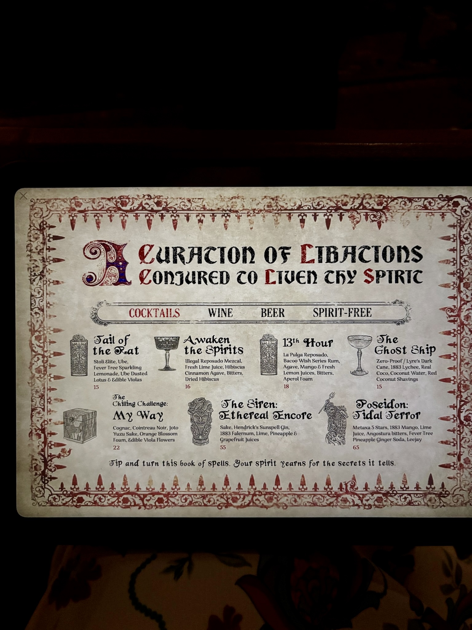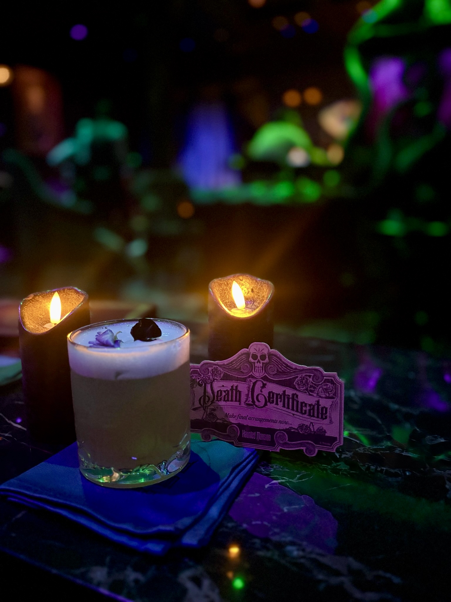 The experience goes well beyond the visuals. The drink menu is filled with cleverly themed cocktails and mocktails, each with its own ghostly twist—some may even reveal hidden effects as you sip. Whether you prefer something chilling, bubbling, or beautifully macabre, the Parlor offers concoctions that are as enchanting as they are flavorful.
