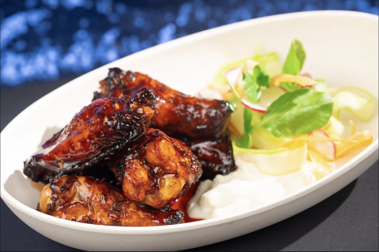 • Silver Screen Wings with your choice of hot honey buffalo or parmesan-garlic, served with celery and carrot slaw