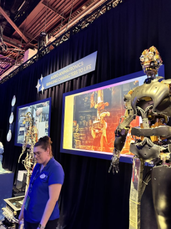We got to see Elsa from Anna and Elsa’s Frozen Journey from Tokyo Disney! While there is a holographic face version over at EPCOT, we hope to see this animatronic at future U.S. Disney parks attractions. We also had the opportunity to see the inner workings of both new and legacy animatronics. Below is Hondo Ohnahka from Millennium Falcon: Smugglers Run, a 1,000th-edition animatronic. The BDX Droids, which recently made their debut in Galay’s Edge at Disneyland Park, were on display, interacting and dancing with guests. They were so incredibly cute and it was an awesome experience getting to interact with them. Be sure to keep an eye out for them next time you visit the park!