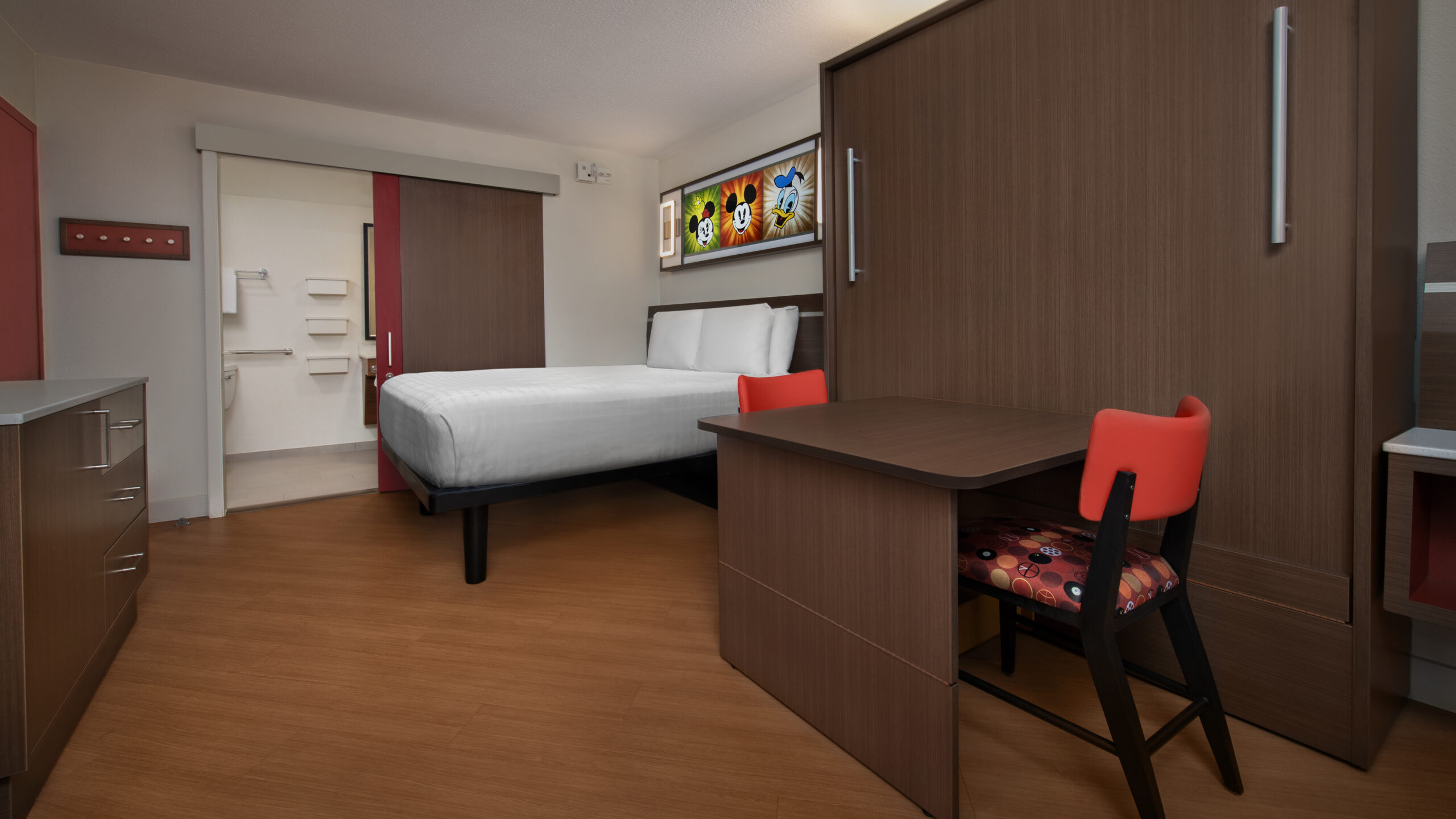 Disney’s All-Star Movies Resort has 1900+ guest rooms. All rooms have different view options, such as the courtyard, pool, or parking area. All standard rooms have one King-size bed or one Queen-size bed and one Queen-size table bed.