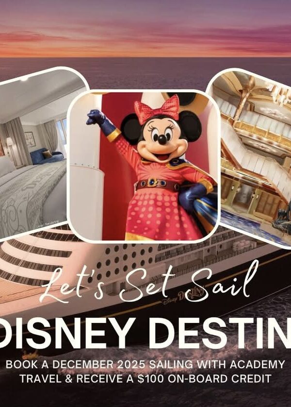 Cruise, Disney, Disney Cruise Line · October 22, 2025Set Sail on the Disney Destiny — and Get $100 to Spend Onboard! There’s never been a better time to set sail on a Disney Cruise Line vacation! From October 18 through December 30, 2025, guests who book with an Academy Travel agent can receive a $100 onboard credit on select sailings on… Read More