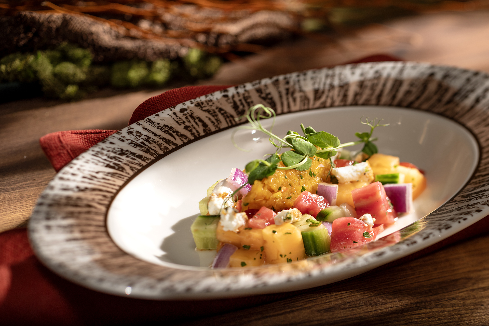 Pride Lands: Feast of The Lion King’s menu balances the wide-ranging flavors of African cuisines with creative spins on Disney Cruise Line guest-favorite dishes, incorporating authentic spice blends, regional sauces, and customary grains and produce. The Lion King restaurant offers a second themed menu during five-night sailings for guests who have an additional dinner seating.