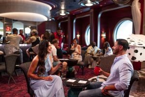 Cruella’s infamous flair for style and wickedly bold attitude are reflected in the bar’s Hollywood Regency-inspired aesthetic, where everything is adorned in her signature color palette of red, black, and white. There is even a glowing, fiber-optic Cruella that appears and disappears in the wall behind an eye-catching spotted piano. And with one side of the lounge open to the Grand Hall, you can sit back with a drink and a prime view of the ship’s premier gathering space.
